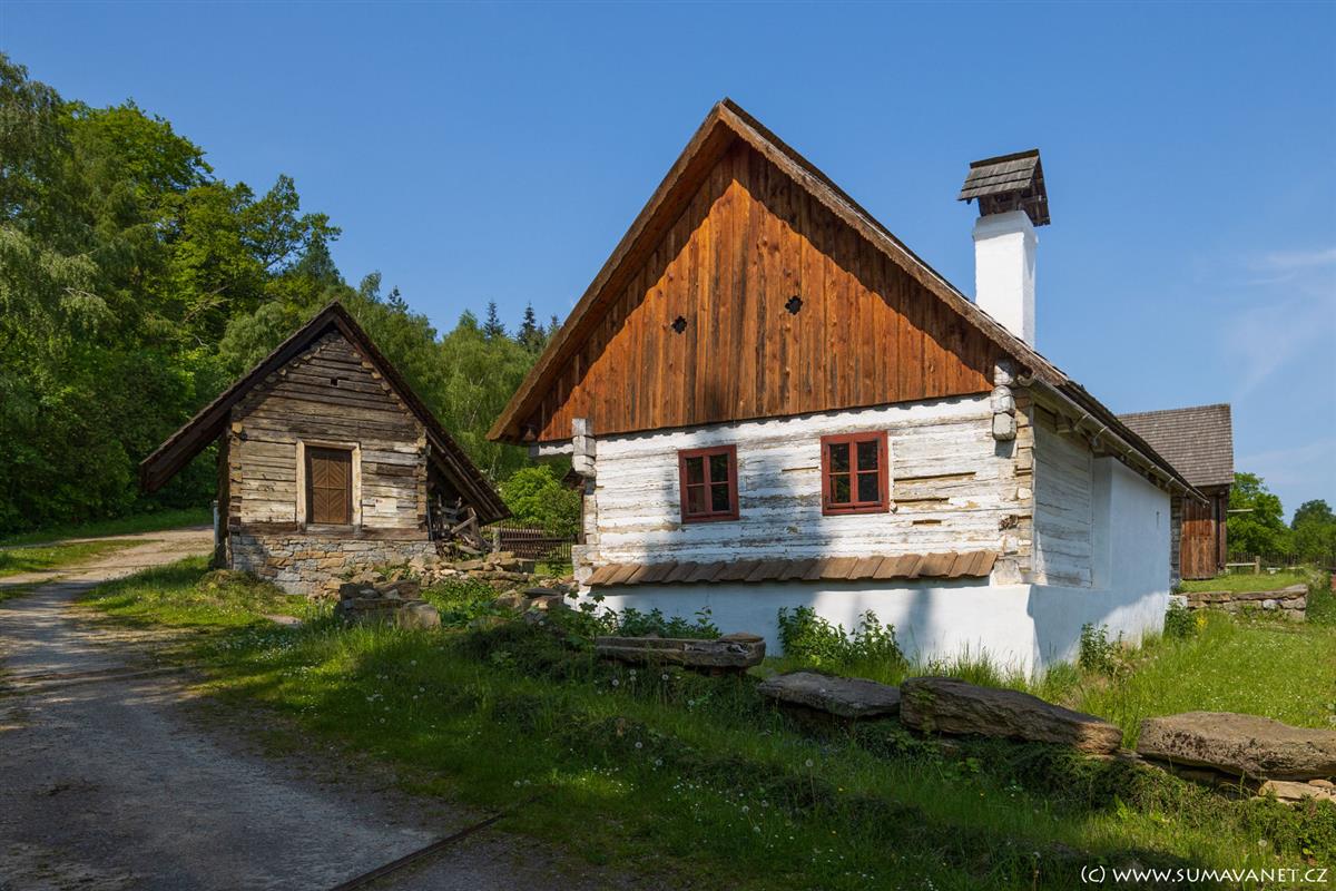 K nejzajímavějším exponátům patří obytná chalupa z Čachrova, roubené špýchary z Přetína a Svrčovce či kopie historické sušárny ovoce. Areál doplňuje kaple s barokní pokladničkou, smírčí kříž a další drobné stavby, které krásně ilustrují venkovskou architekturu a způsob života našich předků.